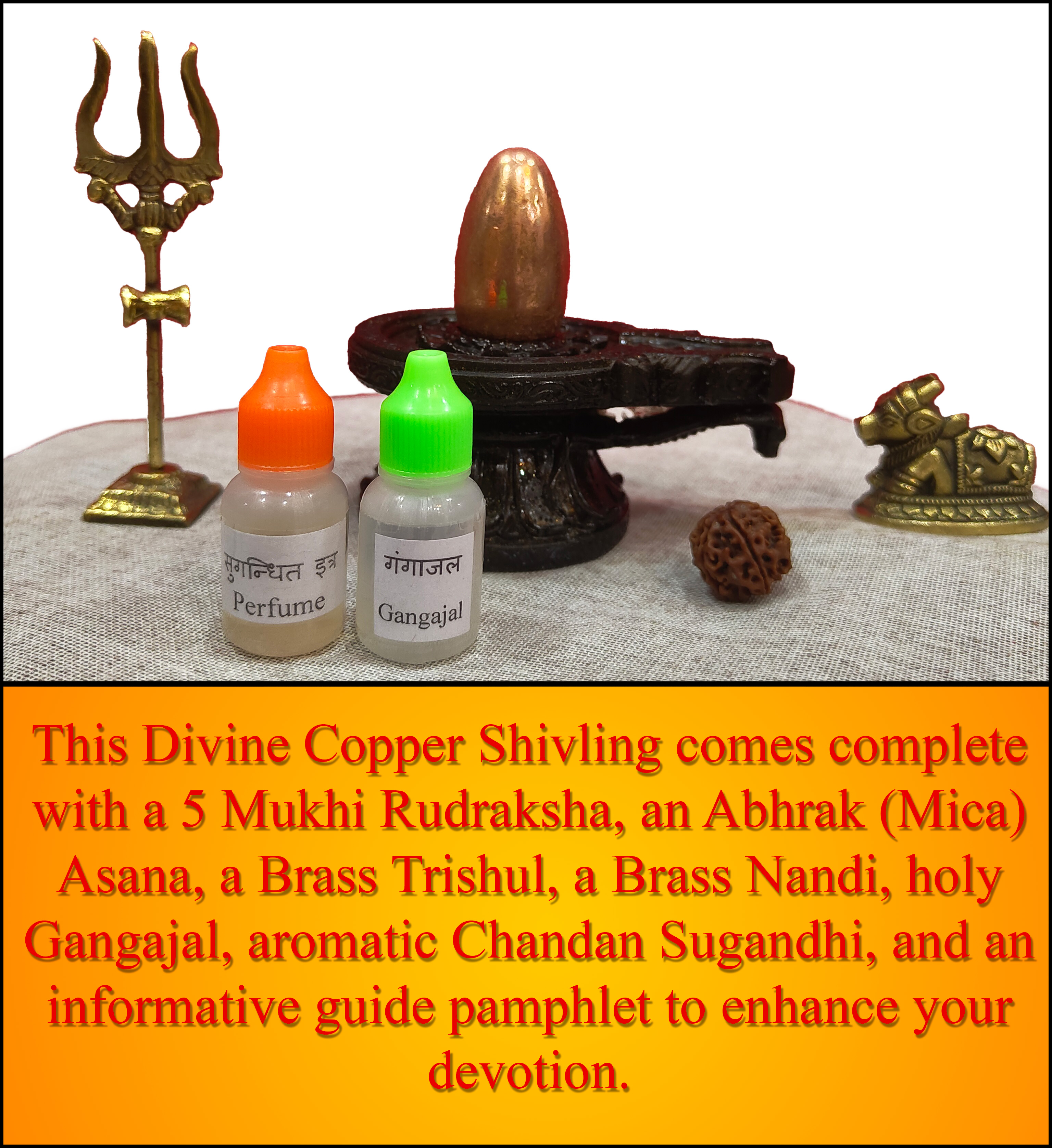 Experience the profound spiritual energy of our Divya Jagrat Copper Jyotirling Shivling, a truly unique creation crafted through an in-depth study of ancient Ras Shastra. This isn't just an idol; it's a living conduit of divine energy, designed to elevate your spiritual practices and bring harmony to your surroundings. What sets our Shivling apart is its extraordinary porous nature. Though invisible to the naked eye, a microscope reveals countless fine pores that allow the Shivling to absorb sacred liquids like Gangajal and even perfumes. This unique characteristic, found nowhere else in the world, means the positive energy of these offerings is slowly diffused into your environment, purifying the space and dispelling negative energies. Copper has long been revered in ancient scriptures as a divine and pure metal, superior even to gold and silver in its spiritual significance. It's believed to be immune to the negative influences of the Kali Yuga, making it the preferred metal for saints and spiritual practitioners. Our Divya Jagrat Copper Jyotirling Shivling embodies this ancient wisdom, acting as a powerful focal point for your devotion. When you bring this Awakened Copper Shivling into your home, you're inviting a source of continuous blessings. Witness the magic as offerings of Gangajal are absorbed, slowly releasing their sacred vibrations. Pour a few spoonfuls of your favorite perfume, and watch it vanish into the Shivling, releasing its soothing fragrance for months. A simple refresh with more perfume reawakens its aromatic embrace, ensuring a perpetually fragrant and spiritually charged atmosphere. To complete your spiritual experience, each Divya Jagrat Copper Jyotirling Shivling comes with an Abhrak (Mica) Asana for sacred placement, a potent 5 Mukhi Rudraksha, a powerful Brass Trishul, a serene Brass Nandi, a small bottle of Gangajal for immediate sacred anointing, and a small bottle of Chandan Itr (Sandalwood Perfume) to witness its unique absorption ability firsthand. Key Features of the Divya Jagrat Copper Jyotirling Shivling Set: Uniquely Porous Design: Crafted with microscopic pores that allow for the absorption of sacred liquids and perfumes, a feature exclusive to our products globally. Divine Energy Conductor: Acts as a powerful conduit for positive energy, radiating Gangajal's sacred vibrations and dispelling negativity. Aromatic Ambiance: Absorbs perfume, releasing a lasting, delightful fragrance for months, creating a serene and spiritually uplifted environment. Pure & Sacred Copper: Made from copper, a metal revered in ancient scriptures for its purity, spiritual significance, and resistance to negative influences. Awakened & Activated: Through specialized Ras Shastra techniques, this copper is "awakened," enabling it to interact uniquely with its surroundings. Complete Sacred Collection: Includes an Abhrak (Mica) Asana, a 5 Mukhi Rudraksha, a Brass Trishul, a Brass Nandi, Gangajal, and Chandan Itr to begin your spiritual practice immediately. Easy to Re-activate: Simple cleaning with lemon and water, followed by sunlight exposure, reopens the pores, restoring its absorbent properties.