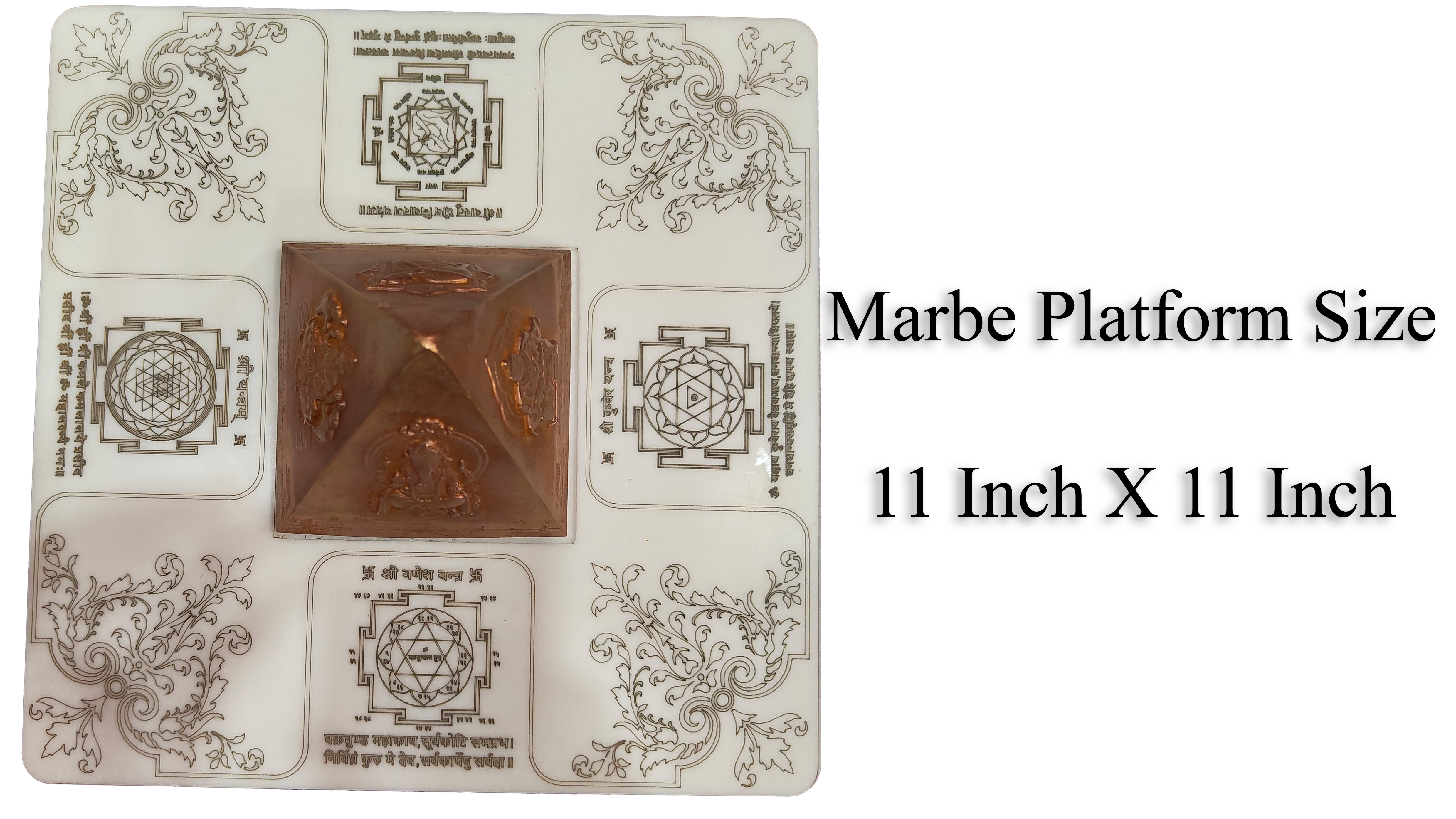 Rooted in the ancient principles of Vastu Shastra, the Divya Siddh Copper Pyramid is designed to attract positive energy, eliminate negativity, and help resolve a variety of personal and environmental imbalances. It is believed to enhance income, bring happiness, improve focus, and relieve both mental and physical distress. This sacred pyramid is crafted from specially purified copper, processed using traditional Ras Shastra methods. One of its remarkable qualities is its ability to absorb Gangajal (holy Ganges water) and gradually release its divine energy into the surrounding environment. Similarly, when fragrant attar (natural perfume) is applied, the pyramid holds the scent and diffuses it into the space, creating a soothing and spiritually uplifting atmosphere. Each of the pyramid's four triangular faces features intricately engraved images of Lord Ganesha, Goddess Gaja Lakshmi, the Vastu Purush, and Lord Kuber—deities known for wisdom, wealth, harmony, and protection. The pyramid is placed on a specially crafted marble base, which is also inscribed with powerful mantras and yantras of the same divine figures, further enhancing the spiritual vibrations it emits. This divine, energy-infused copper pyramid is intended to bring peace, prosperity, and a harmonious environment to your home or workspace. As a special offering, Gangajal and aromatic attar are included as complimentary gifts to activate and enhance the pyramid’s effects from the very first day.
