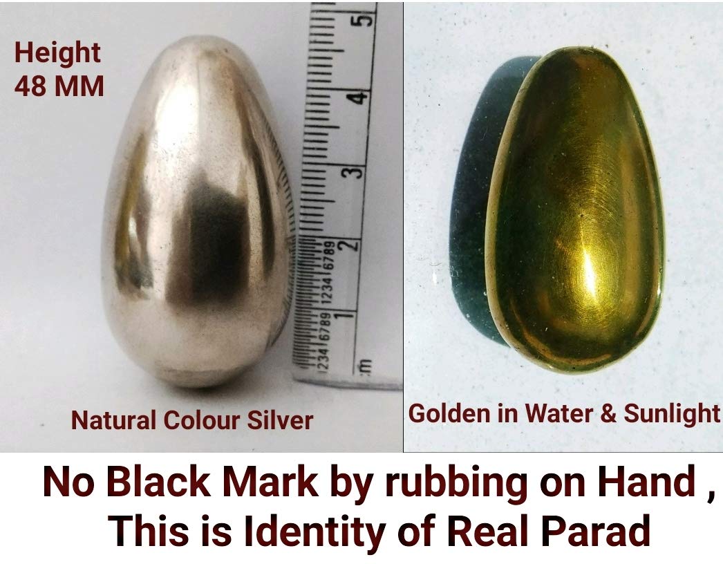 This Parad Shivling is made of 8 Sanskar performed Mercury as described in Ras Sastra Text Books like Ras Tirangini, Ras Ratan Samuchchaya, Rasender Sar sangrah, etc.Sanskars are the eight purification stages of Mercury by doing them Mercury becomes divine and free from Three doshas 1. Vish dosha -There is Poison in unpurified Mercury which is called as Vish Dosha . 2. Mal dosha - There maybe little quantity of zinc, Lead,Tin etc.in unpurified Mercury called as Mal Dosha . Because of this Mal Dosha Mercury leaves Black Mark On hand Or White Cloth. 3. Agni dosha- Mercury's evaporating Temperature is 357 Degree Celsius , Because of Agni Dosha Mercury evaporates below 357 degree Celsius. This is called as Agani Dosha By doing these eight sanskars Mercury free from all three Doshas and Soldified with Abharak,Swarn Makshik and Herbal Extracts. This is completely free from Zinc,Lead or Tin. Which are Described as Doshas of Parad in Ras Shastra Textbooks.Any Type of Blackness will not Appear by Rubbing This Parad Shivling on Cloth or your hand.Original Parad Shivling is free from Poison and all doshas. Original Parad Shivling also can be Tested By putting this in water under sunlight,within 45 min to 1 hour, Original Parad Shivling's Surface will Turn Golden. Parad is Supreme element of the Universe , This is the Element of Lord Shiva as written in Vedas, Puranas, and old ancient Text Books of India . This is also used in Ayurveda Medicines by famous Brands like Baidyanath, Dabur, Patanjali etc. By using as medicine Parad removes all types of deceases and by doing Puja of Parad in a solid form in the Shape of Shivlinga this gives Moksha (Salvation). Worshiping Parad Shivling gives freedom from the sins of many Previous lives . By establishing Parad Shivling in the house Lord Vishnu also becomes a Resident in that house because this is written in the Vedas and Puranas.Lord Vishnu and Lakshmi always resides in the place Where there is presence of Lord Shiva