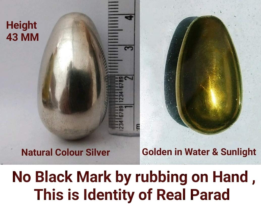 This Parad Shivling is made of 8 Sanskar performed Mercury as described in Ras Sastra Text Books like Ras Tirangini, Ras Ratan Samuchchaya, Rasender Sar sangrah, etc.Sanskars are the eight purification stages of Mercury by doing them Mercury becomes divine and free from Three doshas 1. Vish dosha -There is Poison in unpurified Mercury which is called as Vish Dosha . 2. Mal dosha - There maybe little quantity of zinc, Lead,Tin etc.in unpurified Mercury called as Mal Dosha . Because of this Mal Dosha Mercury leaves Black Mark On hand Or White Cloth. 3. Agni dosha- Mercury's evaporating Temperature is 357 Degree Celsius , Because of Agni Dosha Mercury evaporates below 357 degree Celsius. This is called as Agani Dosha By doing these eight sanskars Mercury free from all three Doshas and Soldified with Abharak,Swarn Makshik and Herbal Extracts. This is completely free from Zinc,Lead or Tin. Which are Described as Doshas of Parad in Ras Shastra Textbooks.Any Type of Blackness will not Appear by Rubbing This Parad Shivling on Cloth or your hand.Original Parad Shivling is free from Poison and all doshas. Original Parad Shivling also can be Tested By putting this in water under sunlight,within 45 min to 1 hour, Original Parad Shivling's Surface will Turn Golden. Parad is Supreme element of the Universe , This is the Element of Lord Shiva as written in Vedas, Puranas, and old ancient Text Books of India . This is also used in Ayurveda Medicines by famous Brands like Baidyanath, Dabur, Patanjali etc. By using as medicine Parad removes all types of deceases and by doing Puja of Parad in a solid form in the Shape of Shivlinga this gives Moksha (Salvation). Worshiping Parad Shivling gives freedom from the sins of many Previous lives . By establishing Parad Shivling in the house Lord Vishnu also becomes a Resident in that house because this is written in the Vedas and Puranas.Lord Vishnu and Lakshmi always resides in the place Where there is presence of Lord Shiva